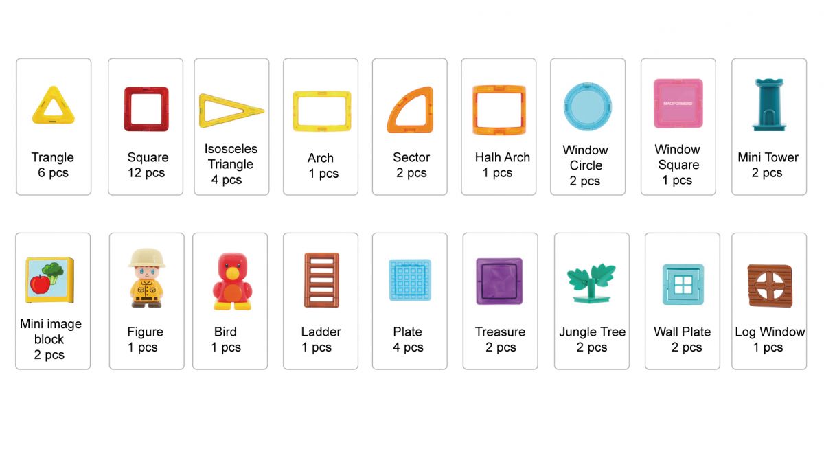 ![]() 磁性建構片由美韓幼教專家設計出品,產品行銷全球均有不錯之風評,磁性建構片-歡樂農場是2022年最新產品, 內有豐富的組合與多樣化的色彩,台灣與歐美日韓同步銷售。 操作非常容易,不用連桿,不須技巧,以磁鐵為連結重心可以組合出各種不同的模型,從8種基礎的磁片圖形,搭配木梯,高塔,樹木,人偶等配件,充份發揮想像力、創造力。 小朋友在搭建組合的過程中,學習到平面與立體的觀念,營造出各種不同的觀樂農場及相關的工具,達到寓教於樂的功能。